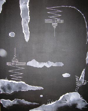 Materiaal: papier, zijdedraad,acryl op doek